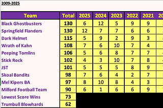 Now that the 2025 Regular Season is over, it is time to update the All-Time Standings